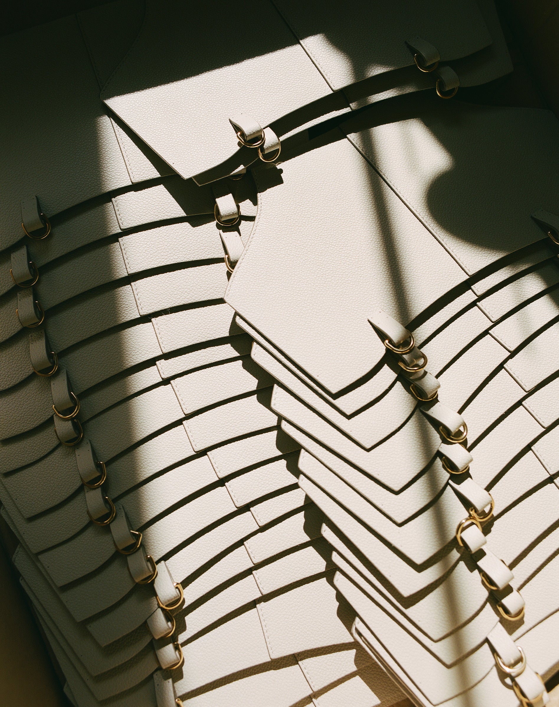 La belleza del cuero es esencial para realzar la visión creativa y el saber hacer artesanal. Se manifiesta en el “tacto”, que determina la sensación del cuero, su maleabilidad, su estructura y la perfección de su superficie. Polène utiliza exclusivamente cueros certificados ISO 9001, cuya calidad se verifica en múltiples ocasiones por las curtidurías y los artesanos de la maison antes del corte de los patrones y nuevamente al final del proceso de fabricación.